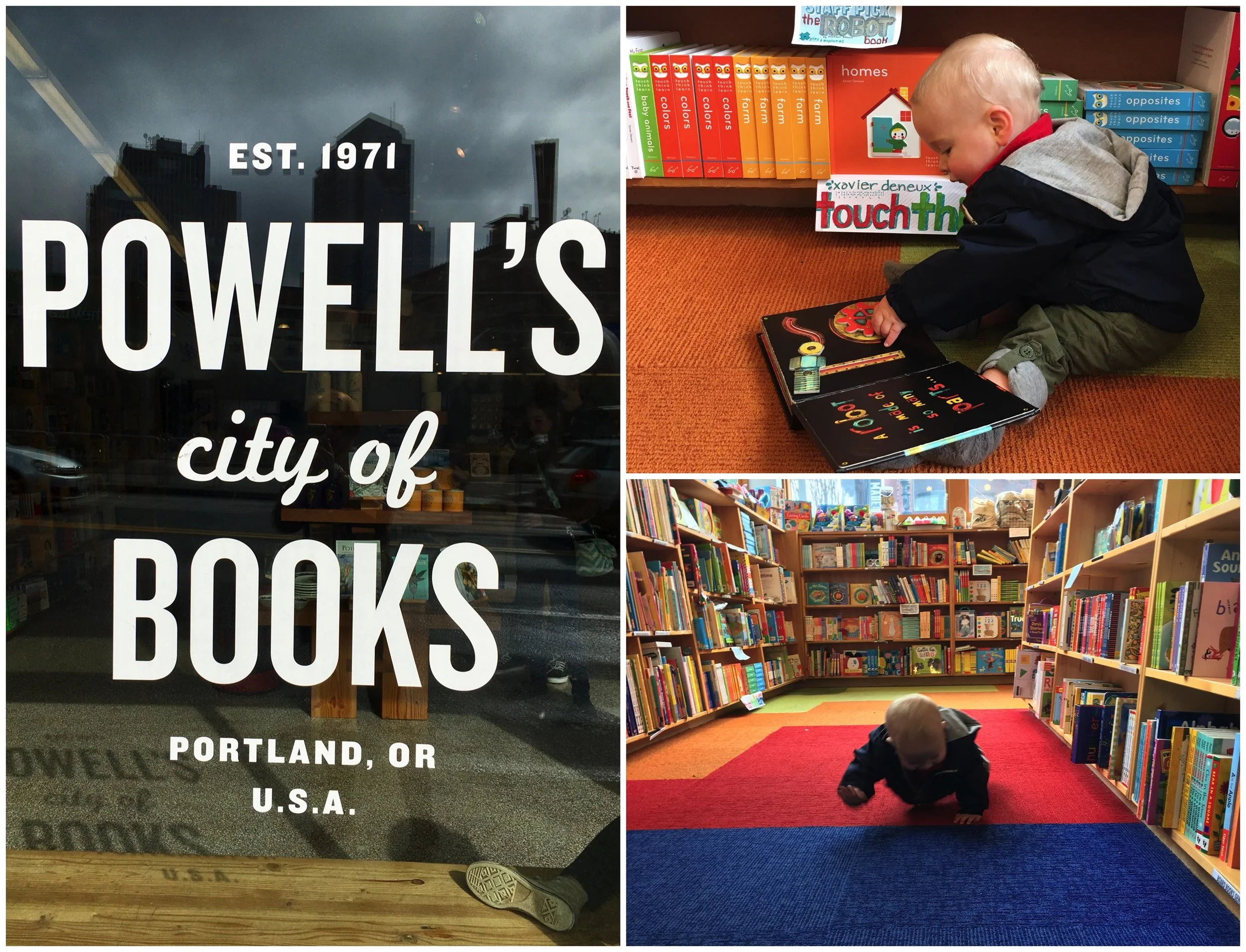 What's a trip to Portland without a visit to Powell's Books? We got lost in there the last time we visited, and then our cell phones didn't have any service so we wondered around trying to find each other for a good while. Luckily, we stayed together this time so no getting lost. We mostly checked out the children’s section. There were tons of children's books and we had a awesome time checking out the books. Caleb enjoyed some of the books as well, but mostly he enjoyed pushing his stroller through the aisles. We ended up getting the Opposites book and the Children’s Book of Virtues for Caleb's library collection.