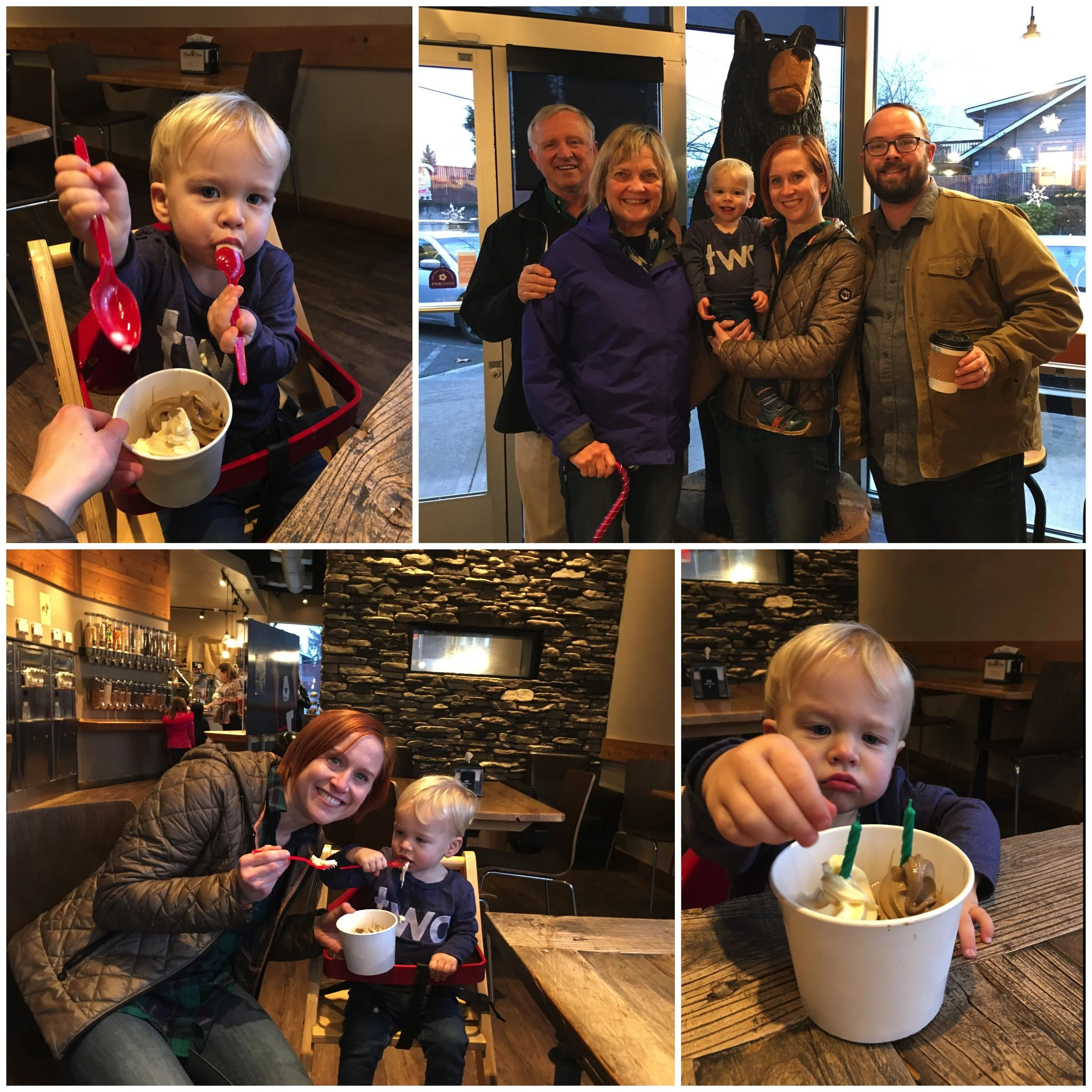 As for treats, Caleb has two loves: frozen yogurt/ice cream and cookies. I think frozen yogurt beats ice cream only because it sticks to the spoon better so it's easier to eat. So, we all headed to Black Bear for some froyo.