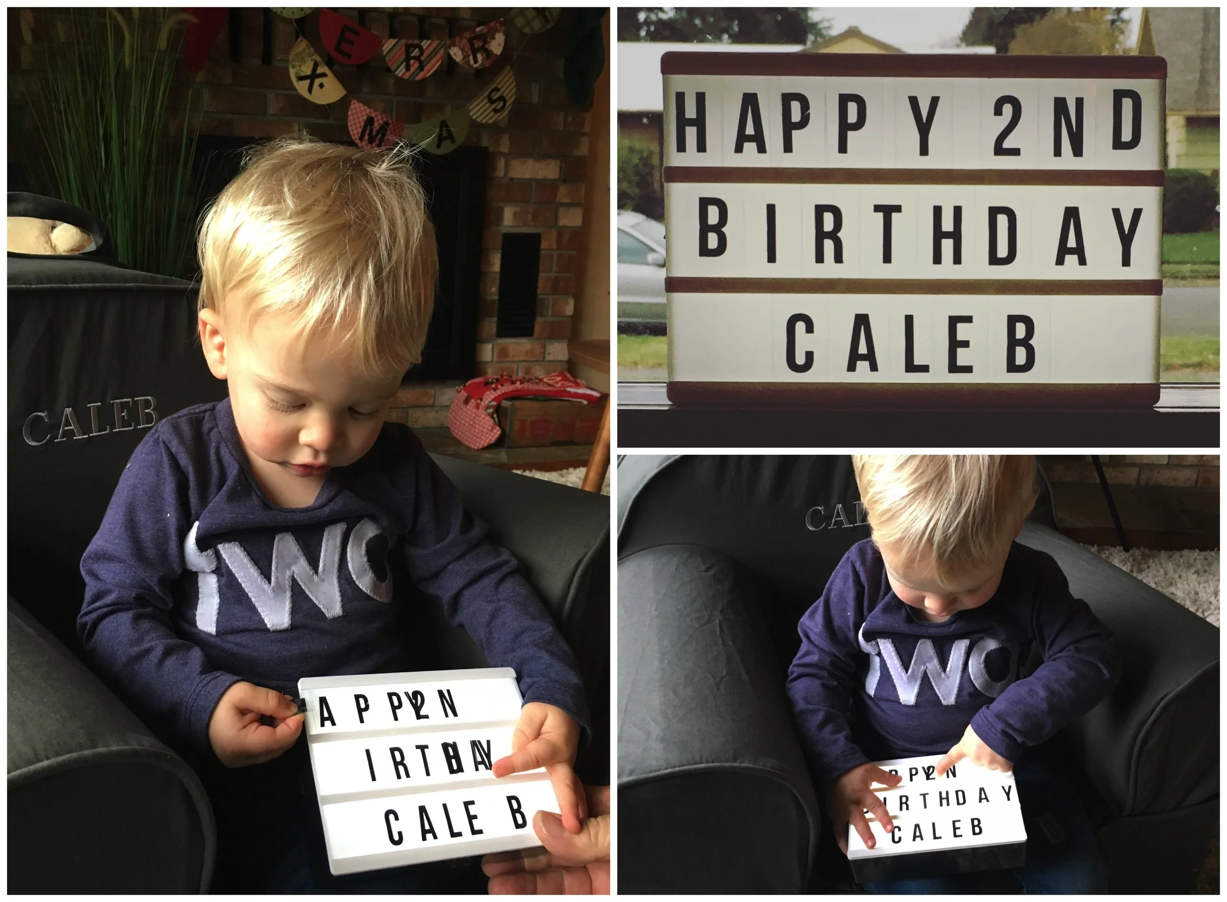 I tried to get a cute picture of Caleb with this new sign, but he was more interested in playing with the sign. I usually take the birthday photos with the blocks, but the past few times he's thought it funny to knock them over - our wood floors fear him.